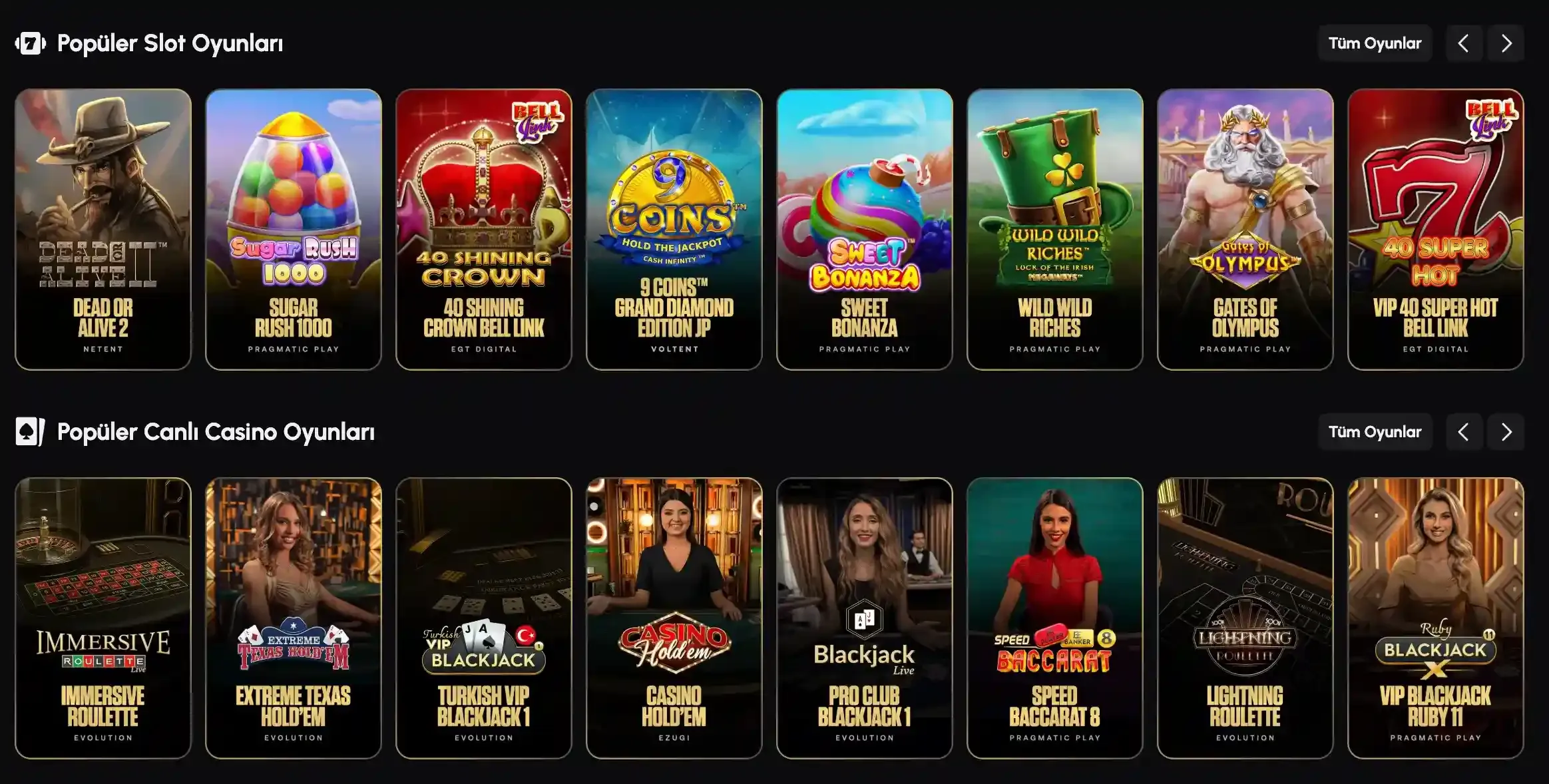 Slot Oyunları: Klasik meyve sembollerinden Megaways mekanik sistemine sahip modern video slotlarına kadar her türlü oyun mevcuttur. Hem nostaljik oyunculara hem de yenilik arayan kullanıcılara yönelik içerikler bir arada bulunmaktadır.